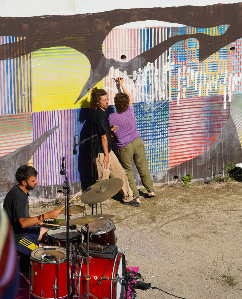 « Le Ressenti du Son », interprété par une artiste plasticienne sourde, un danseur, un meneur de jeu et un percussionniste, est un travail transdisciplinaire interrogeant les qualités physiques et vibratoires du son. Cette recherche vise à affiner nos relations sensorielles envers le son et ses qualités vibratoires, puis, a pour défi de les transposer, de les « matérialiser » visuellement et en mouvement.